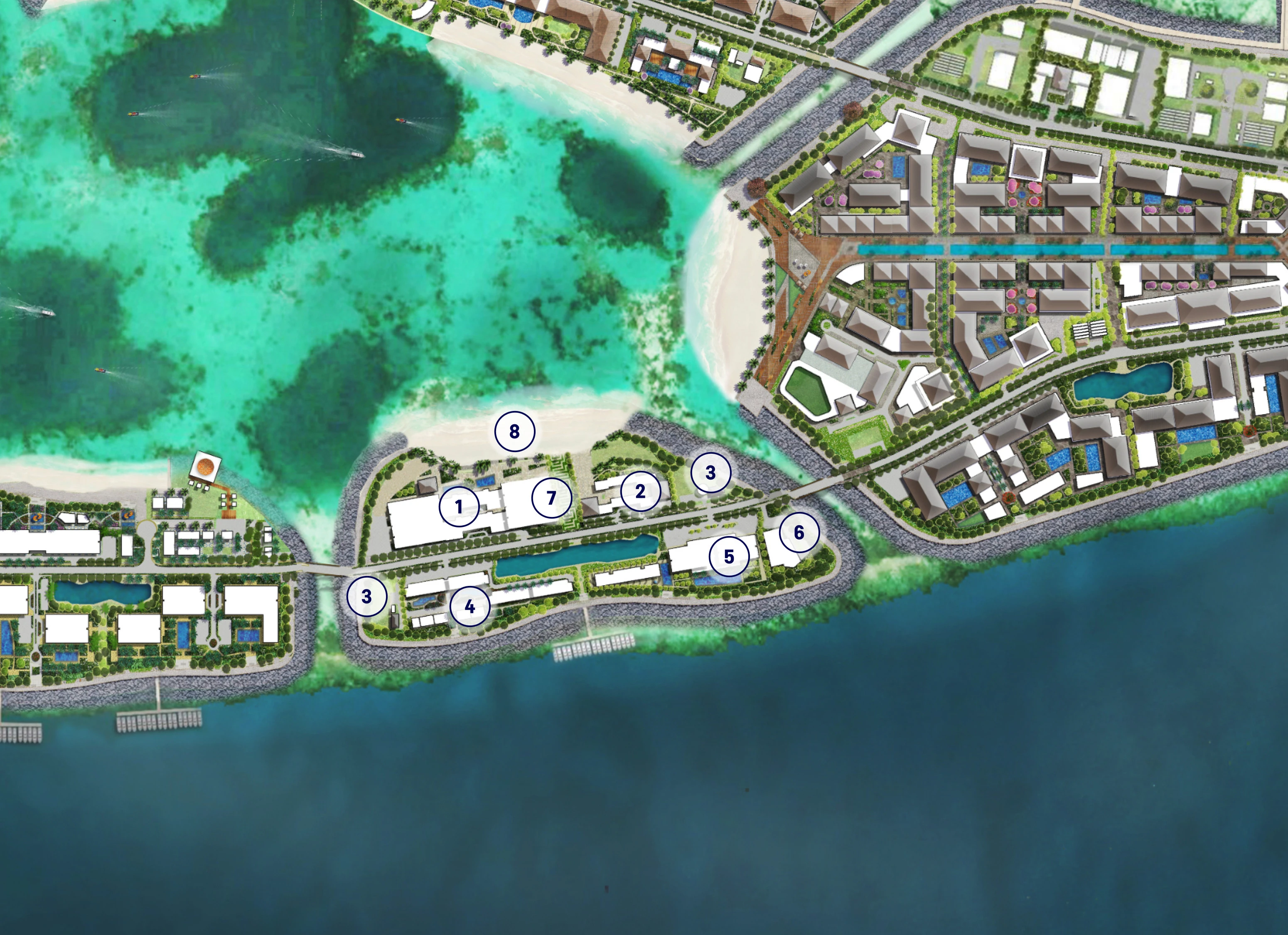 Experience the vibrant beach atmosphere with beach clubs, shops, and exciting water sports. The island caters to adventurous young adults with a Water Activity Center offering diving, snorkeling, water skiing, and kayaking. Accommodation options include Lagoon-side Resort Hotels, Seaside Service Apartments, or the unique Villatel.